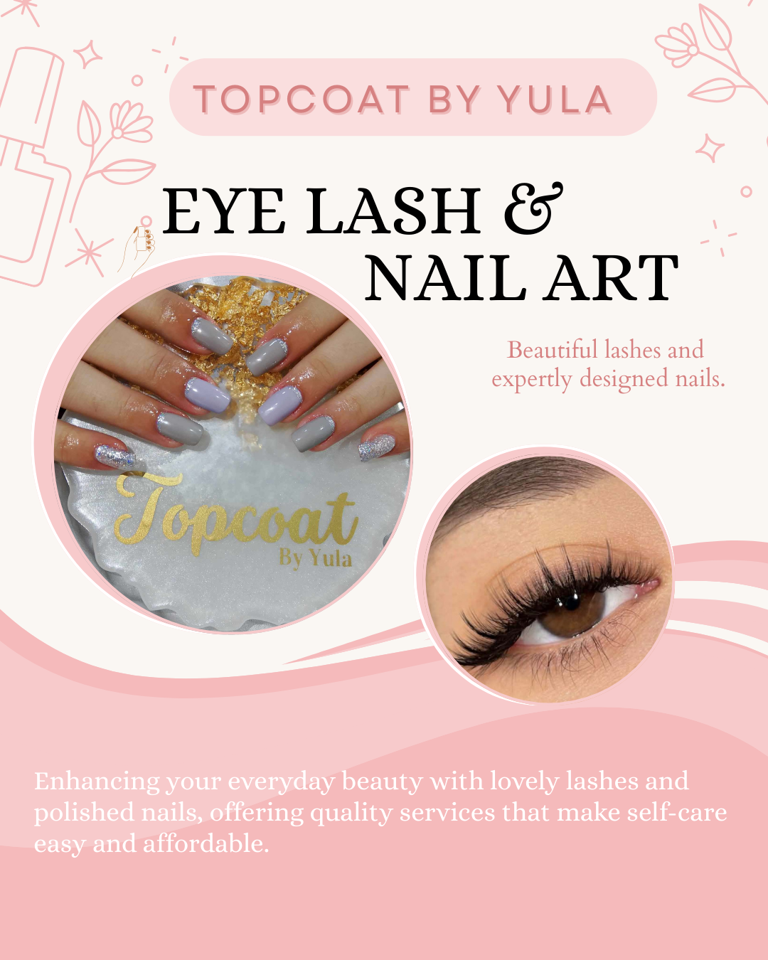 Known for her kind and warm-hearted nature, Yula is passionate about providing a pampering experience that makes every client feel valued, relaxed, and confident. With a strong focus on quality, hygiene, and thoughtful care, Topcoat by Yula continues to grow as a trusted destination for lashes, nail artistry, and self-care treatments.